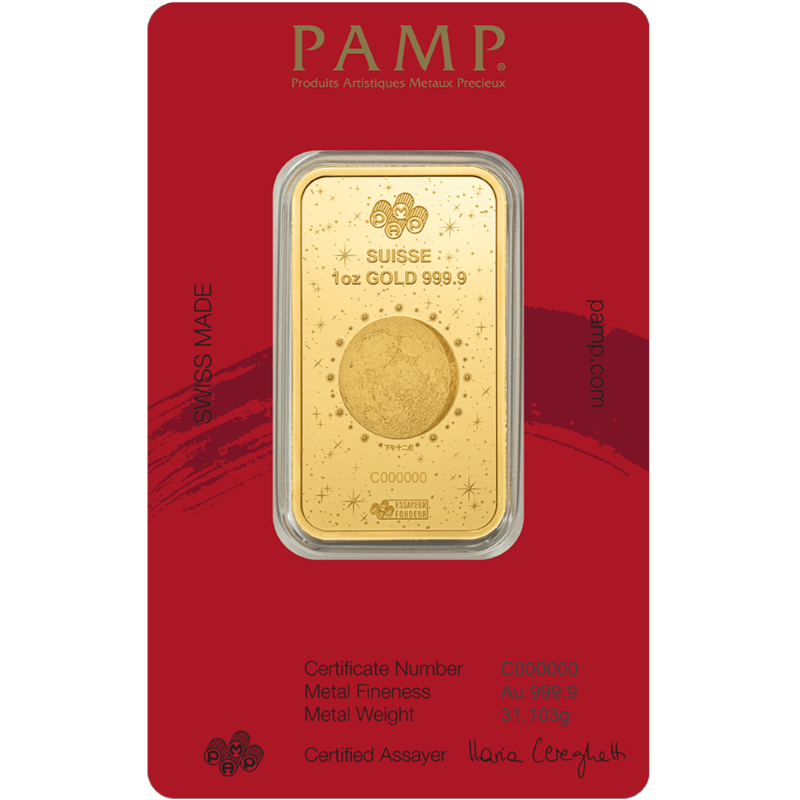 These 1 oz PAMP Year of the Horse gold bars would make a great addition to any lunar collection and are a perfect gift for anyone born under the Year of the Horse (1930, 1942, 1954, 1966, 1978, 1990, 2002, 2014). Add this 1 oz PAMP Year of the Horse gold bar to your cart today!
